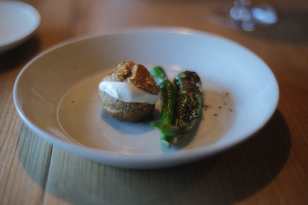 甘さのない可愛らしい大きさのシュークリームの隣に、ソテーしたシシトウが添えてありました。